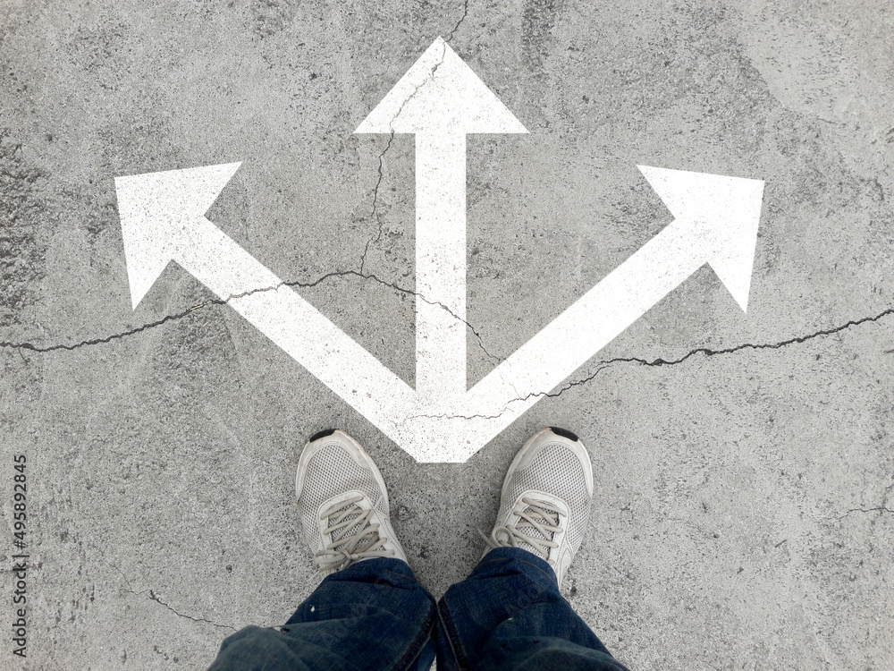 Feet Walking Away Many Directions Arrow Stock Photo 2264558861