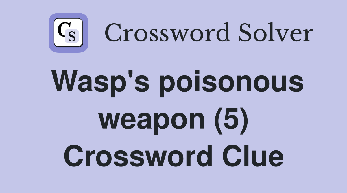Wasp #39 s poisonous weapon (5) Crossword Clue Answers Crossword Solver