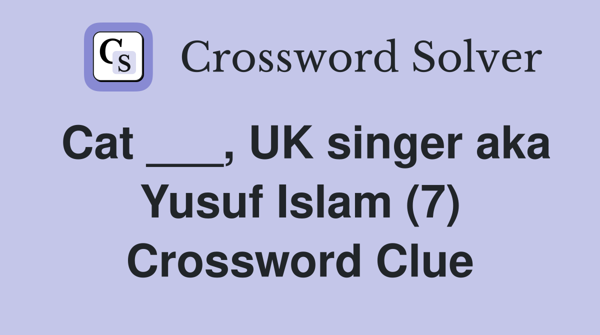Cat UK singer aka Yusuf Islam (7) Crossword Clue Answers