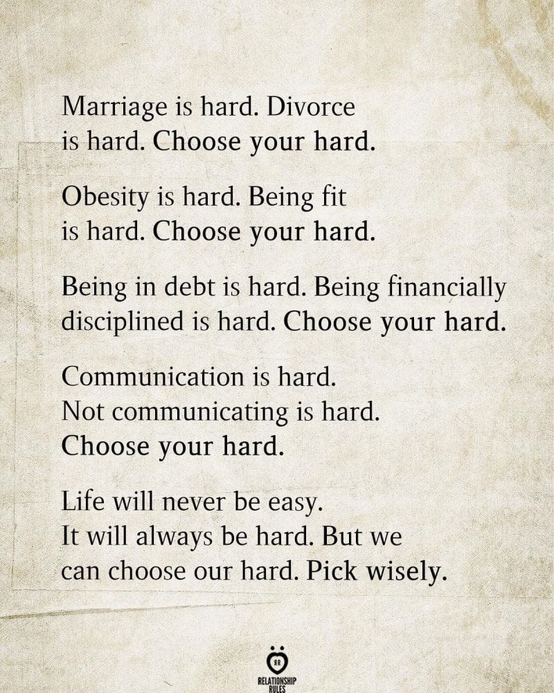 Marriage is hard Divorce is hard Choose your hard Obesity is hard