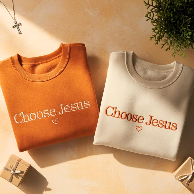 CHOOSE JESUS Embroidered Crewneck Bible Verse Sweater Christian