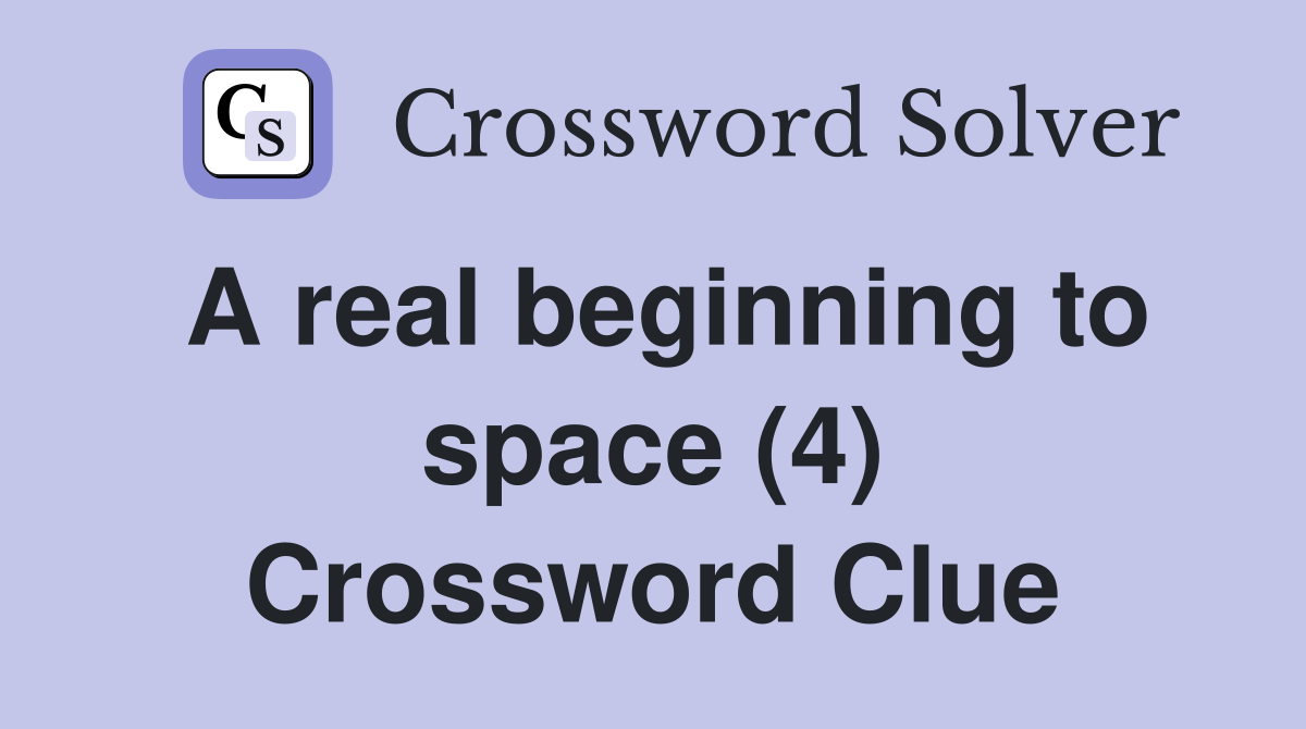 A real beginning to space (4) Crossword Clue Answers Crossword Solver