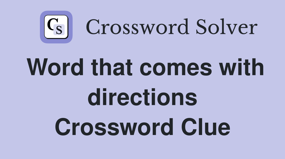 Word that comes with directions Crossword Clue Answers Crossword Solver