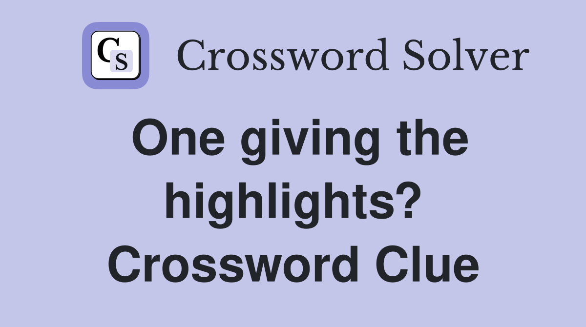 One giving the highlights? Crossword Clue Answers Crossword Solver