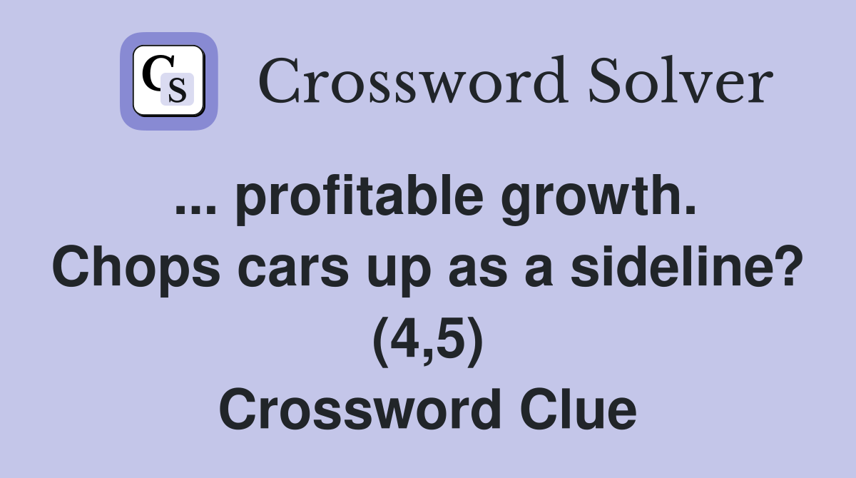 profitable growth Chops cars up as a sideline? (4 5) Crossword Clue