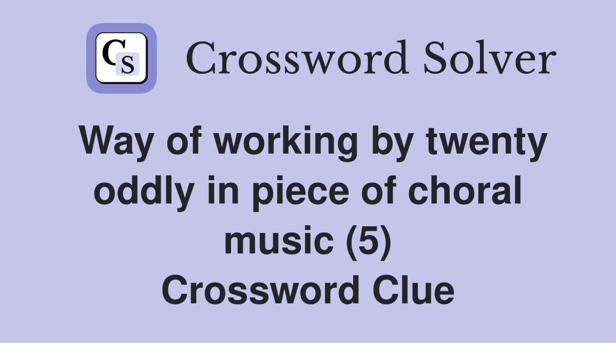 Way of working by twenty oddly in piece of choral music (5) Crossword