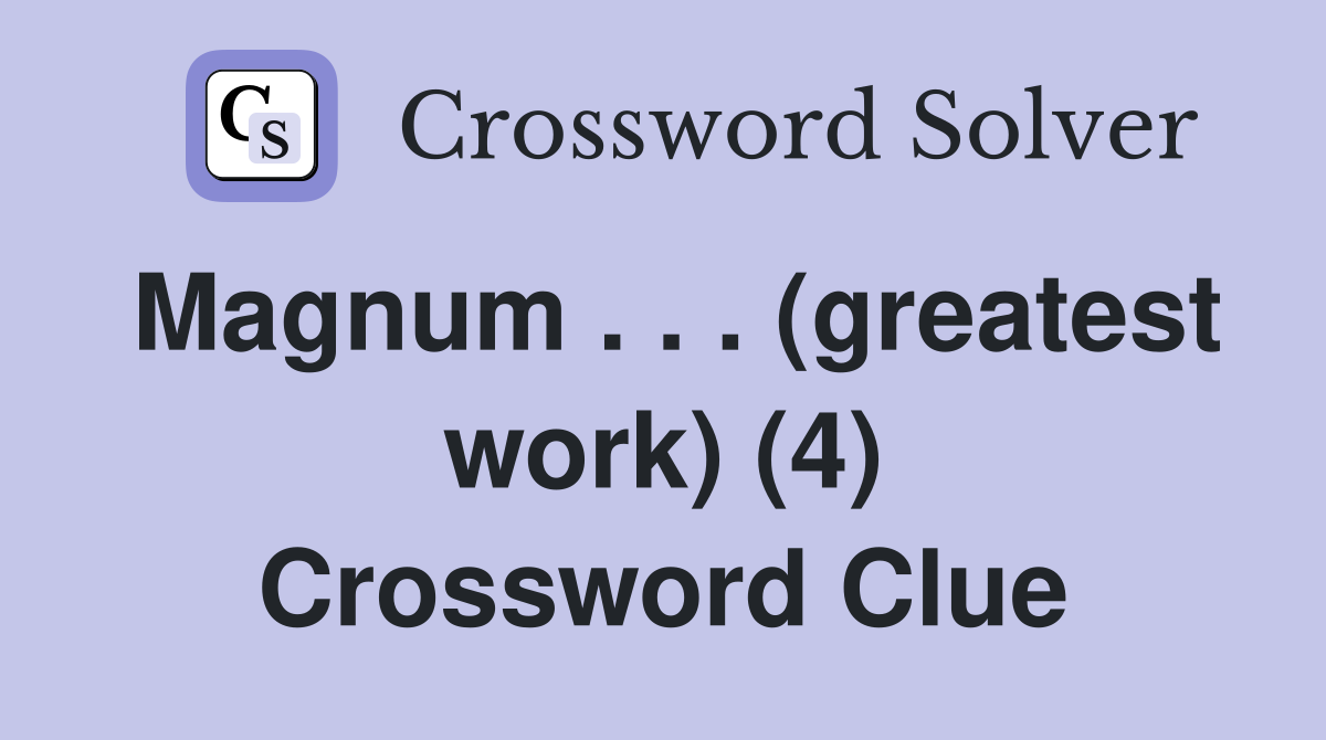 Magnum (greatest work) (4) Crossword Clue Answers Crossword