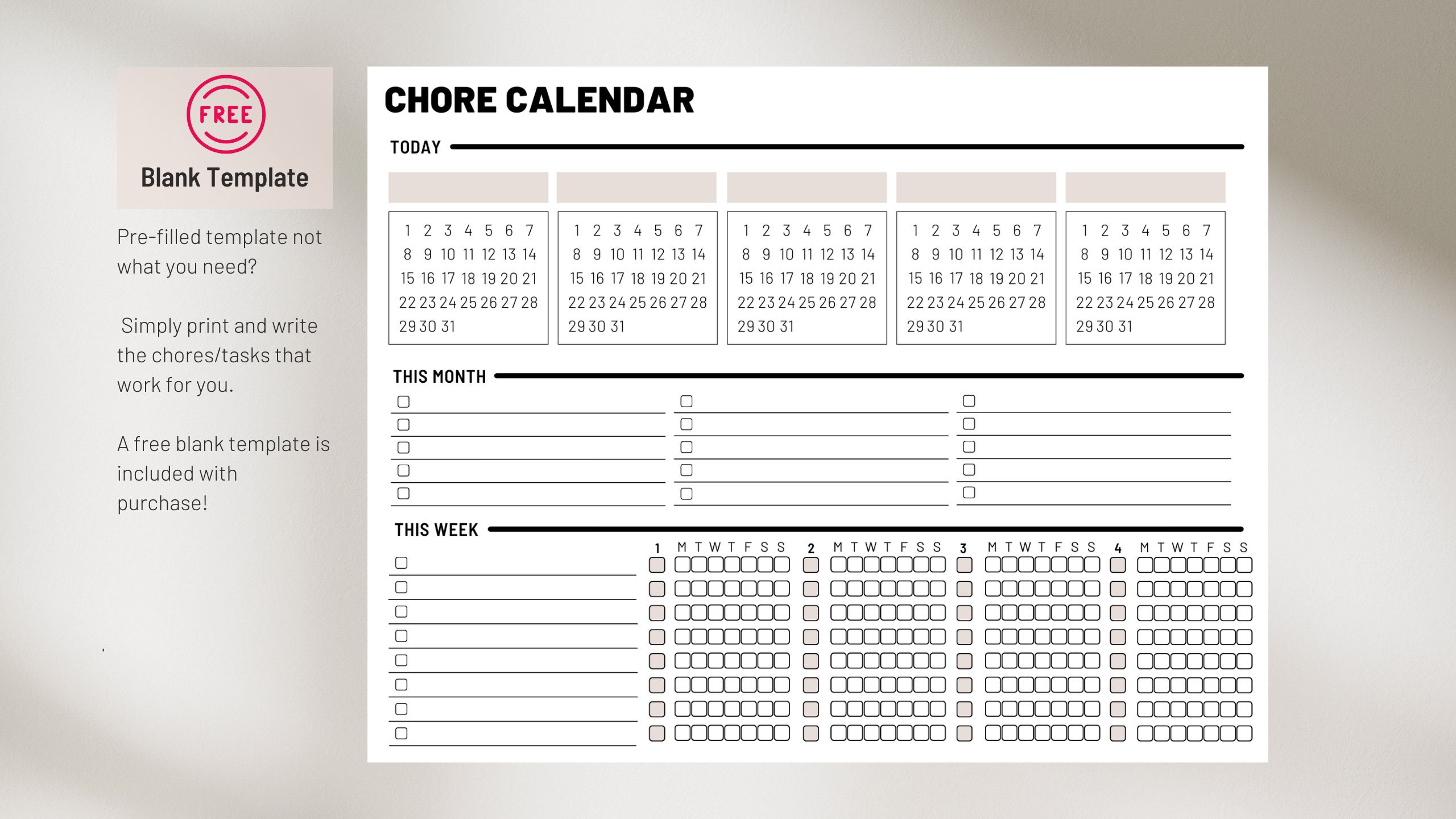 Free Monthly Chore Calendar Template to Organize Your Home