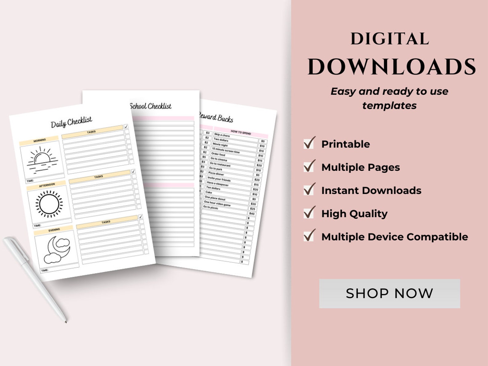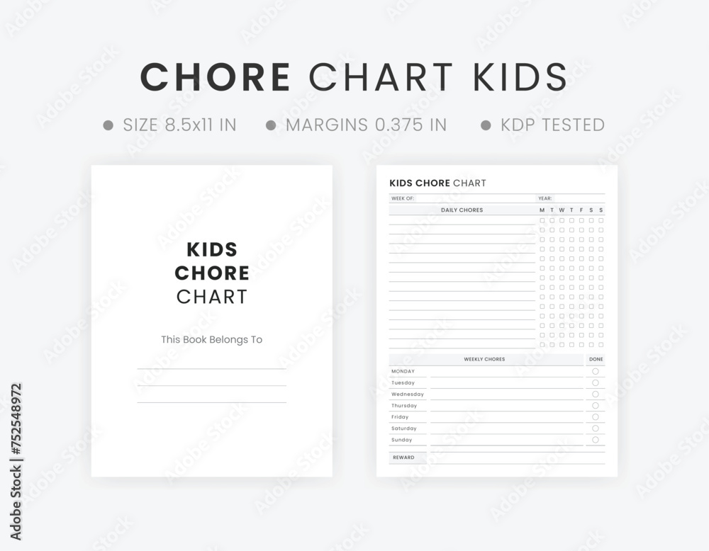 Kids Printable Chore Chart Daily and Weekly Responsibility Chart