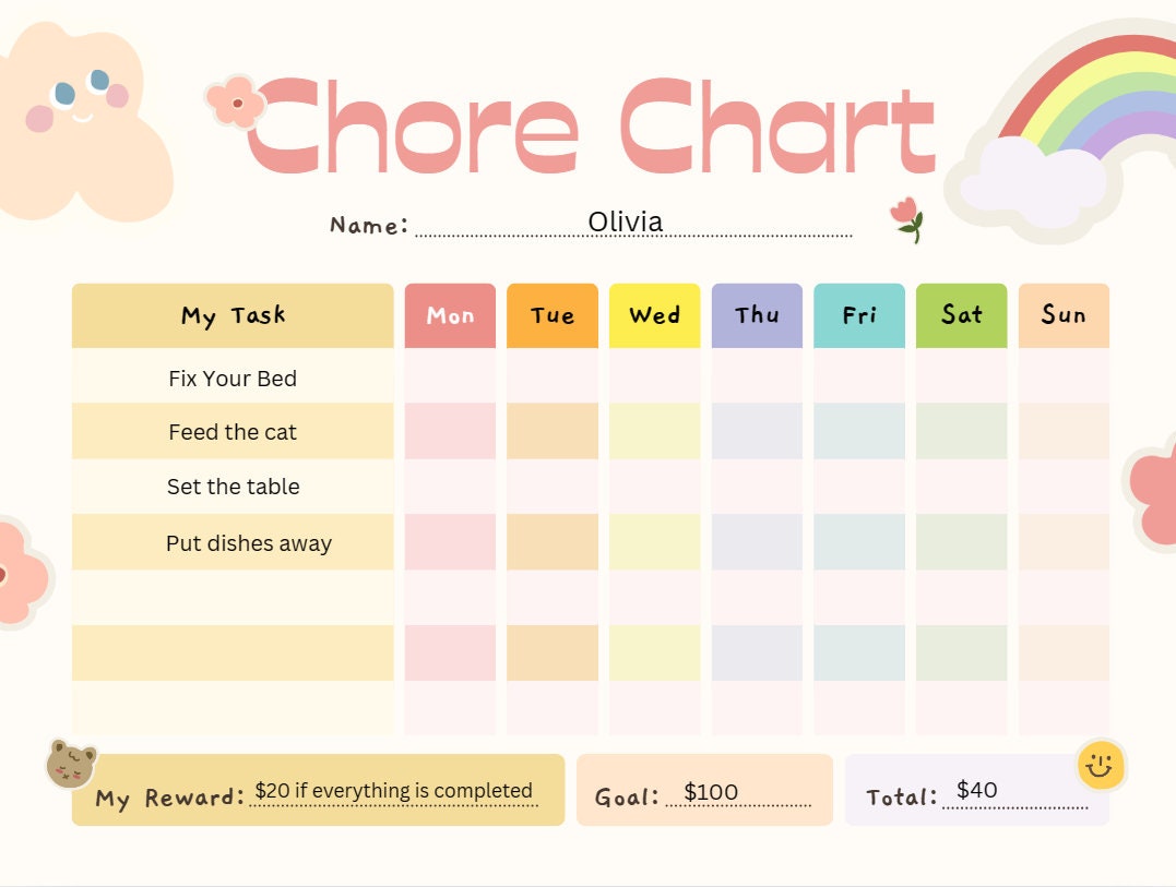 Chore Chart Template: an Editable Chore Chart or Printable Chore Chart