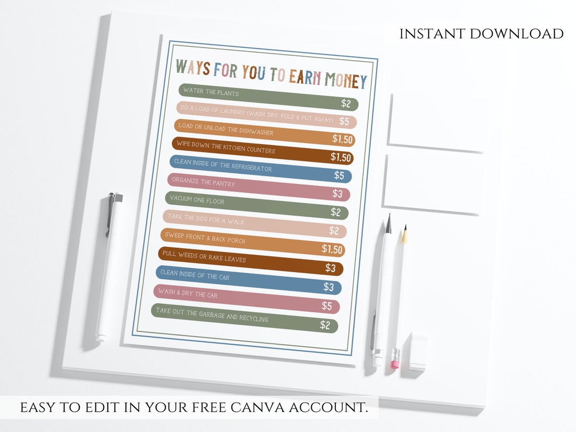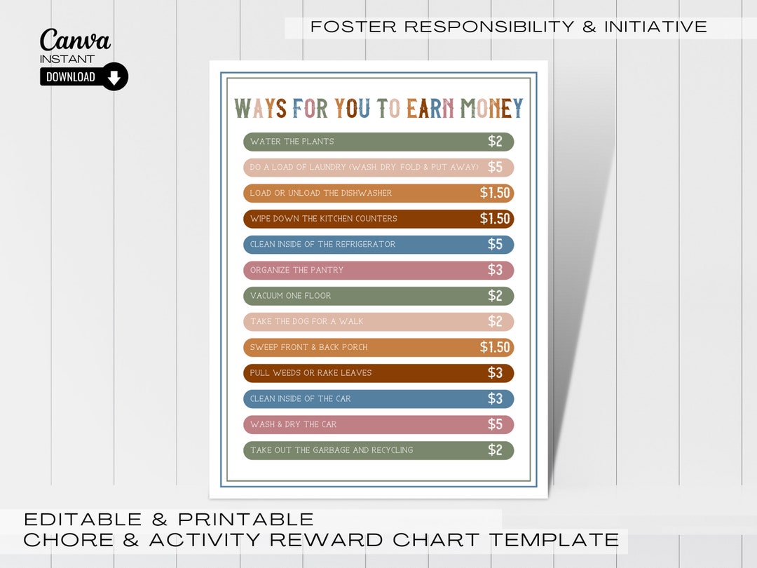 Printable Kids Chore Checklist Editable Responsibility Chart Etsy