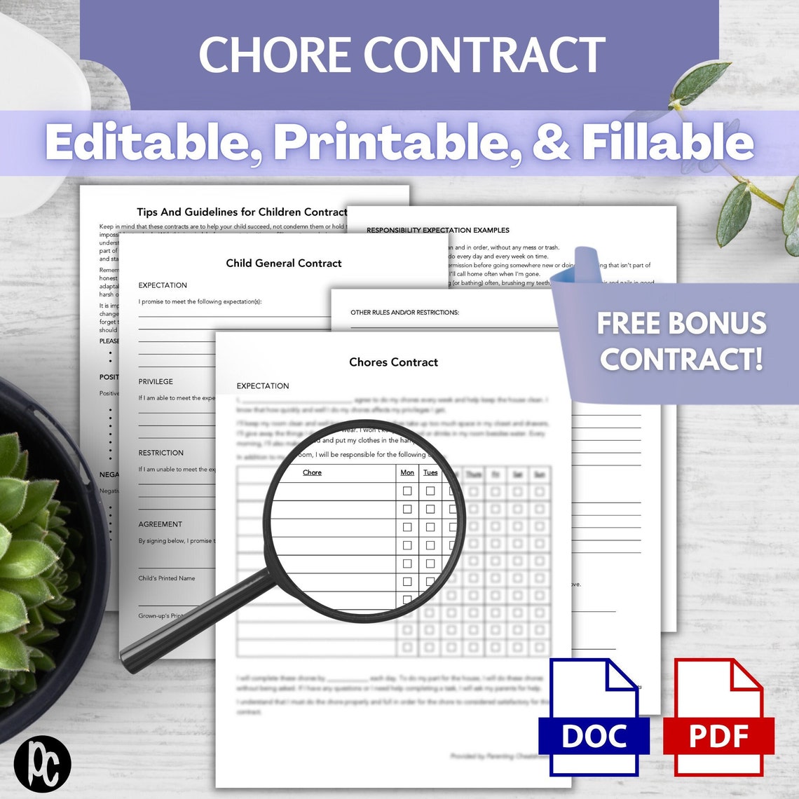 Easy to Edit Child Chore Contract for Kids Teen Student Etsy