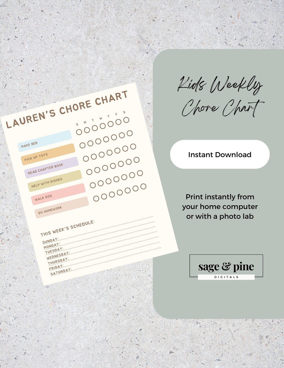 Editable Chore Chart for Kids Template Kid s Chores Printable PDF