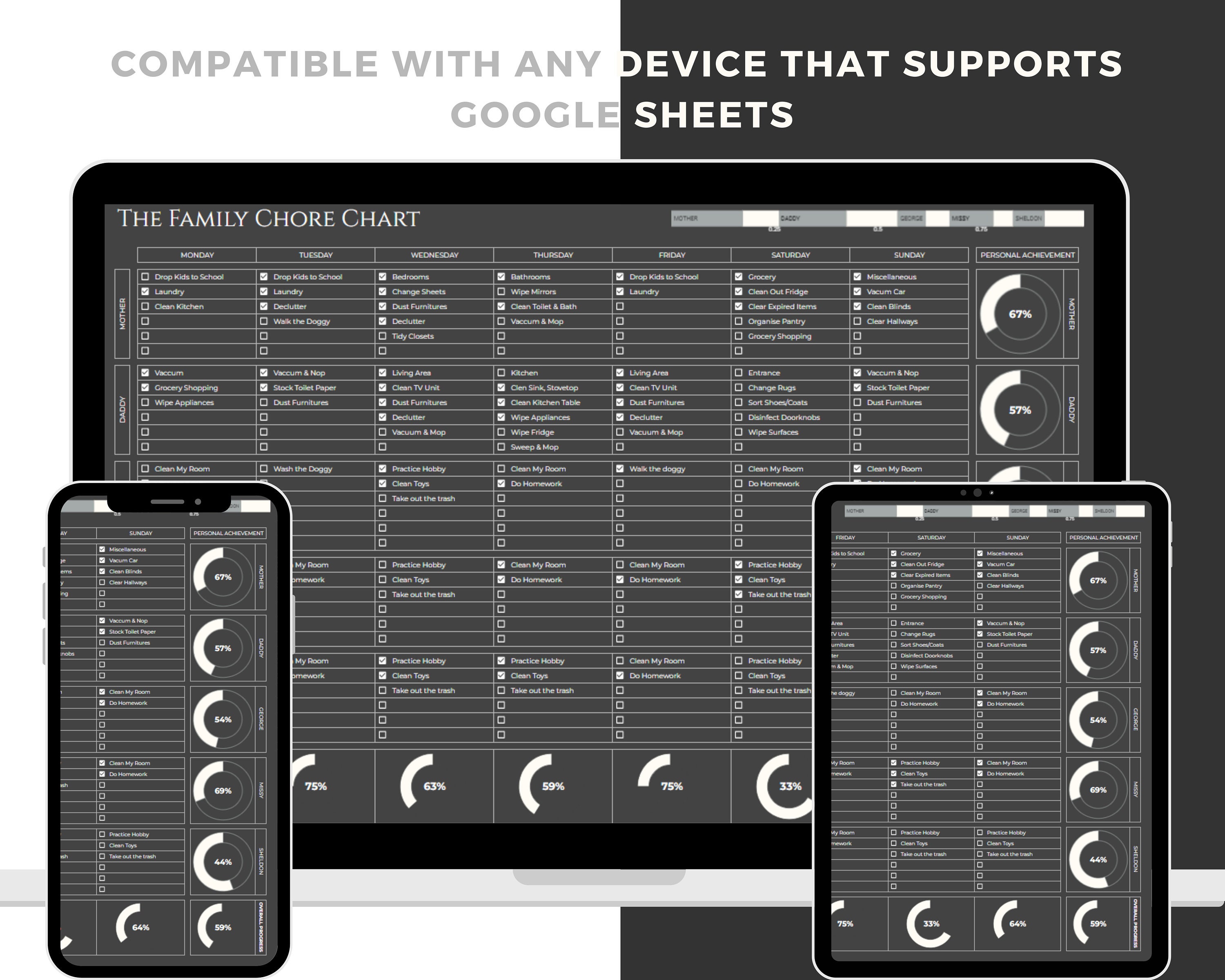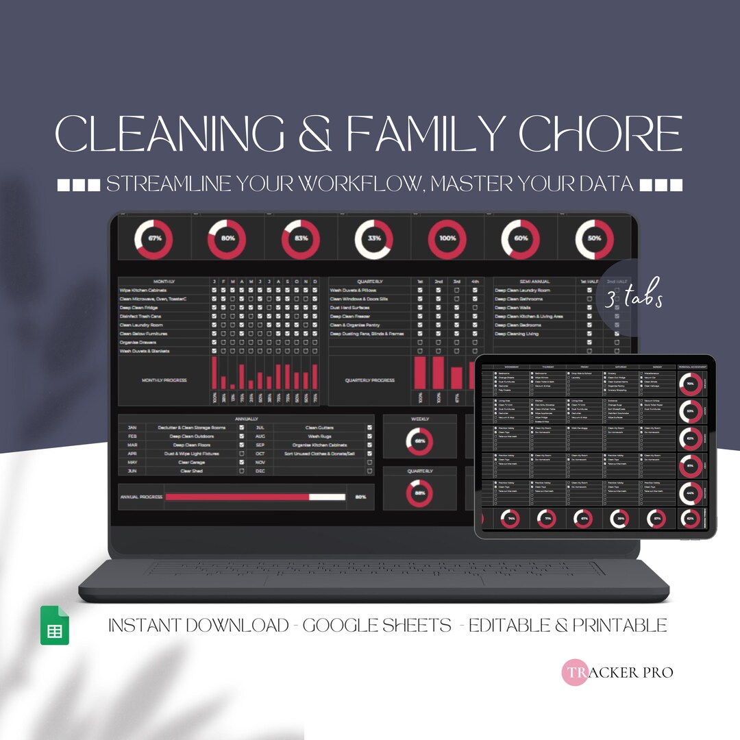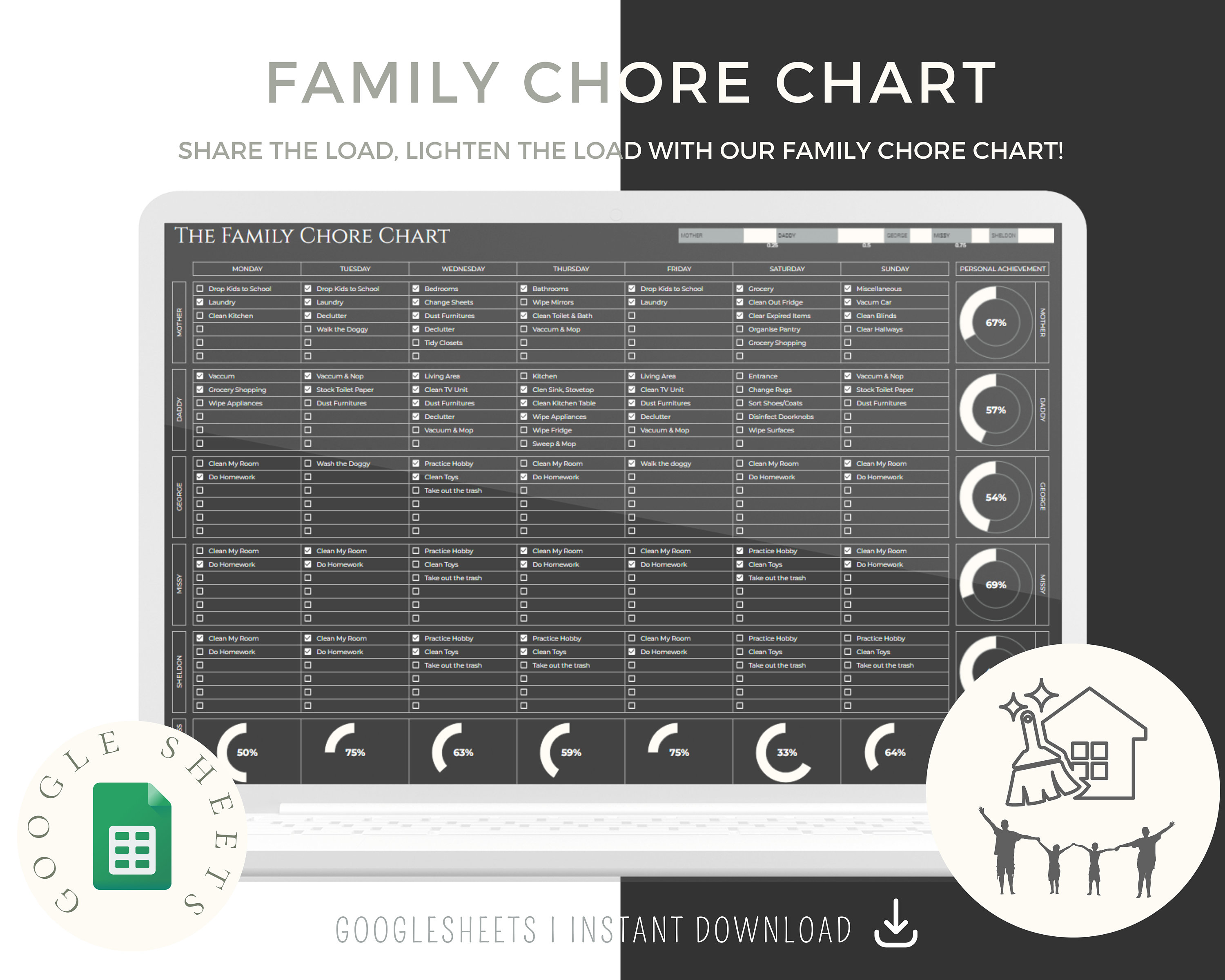 Chore Family Chart Spreadsheet Template for Google Sheets Cleaning