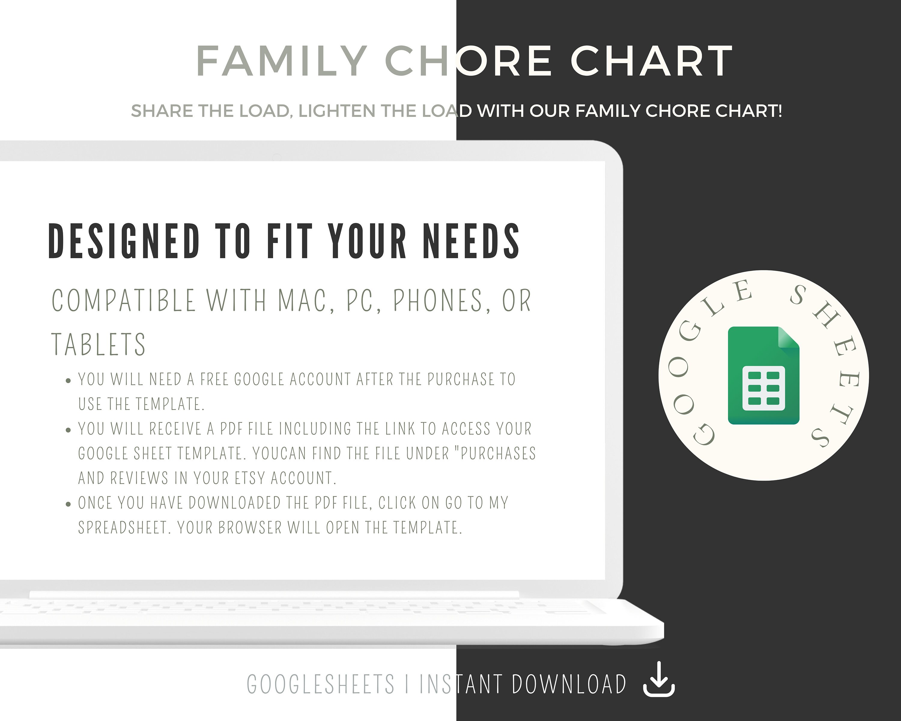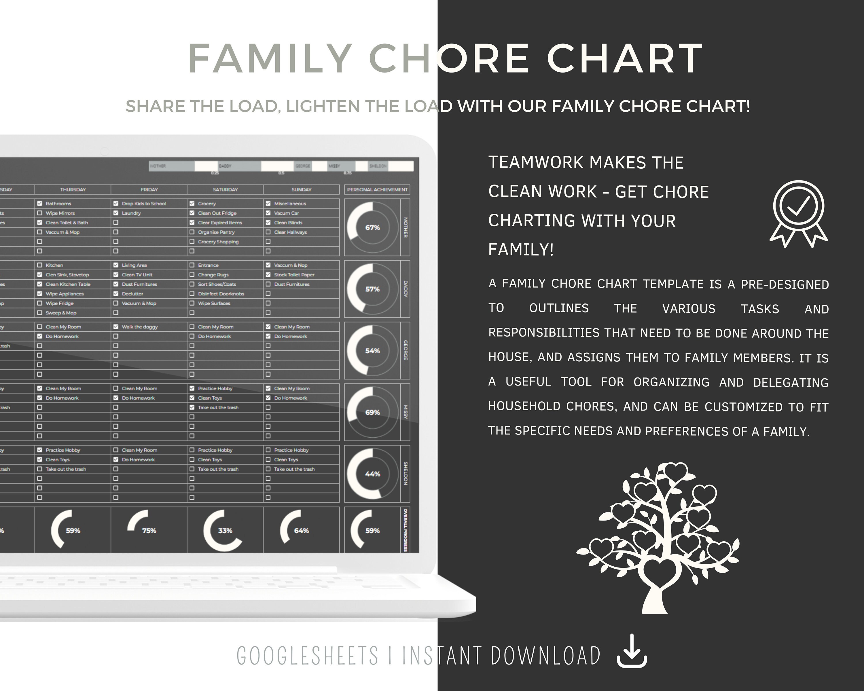 Family Chore Chart Spreadsheet Template for Google Sheets