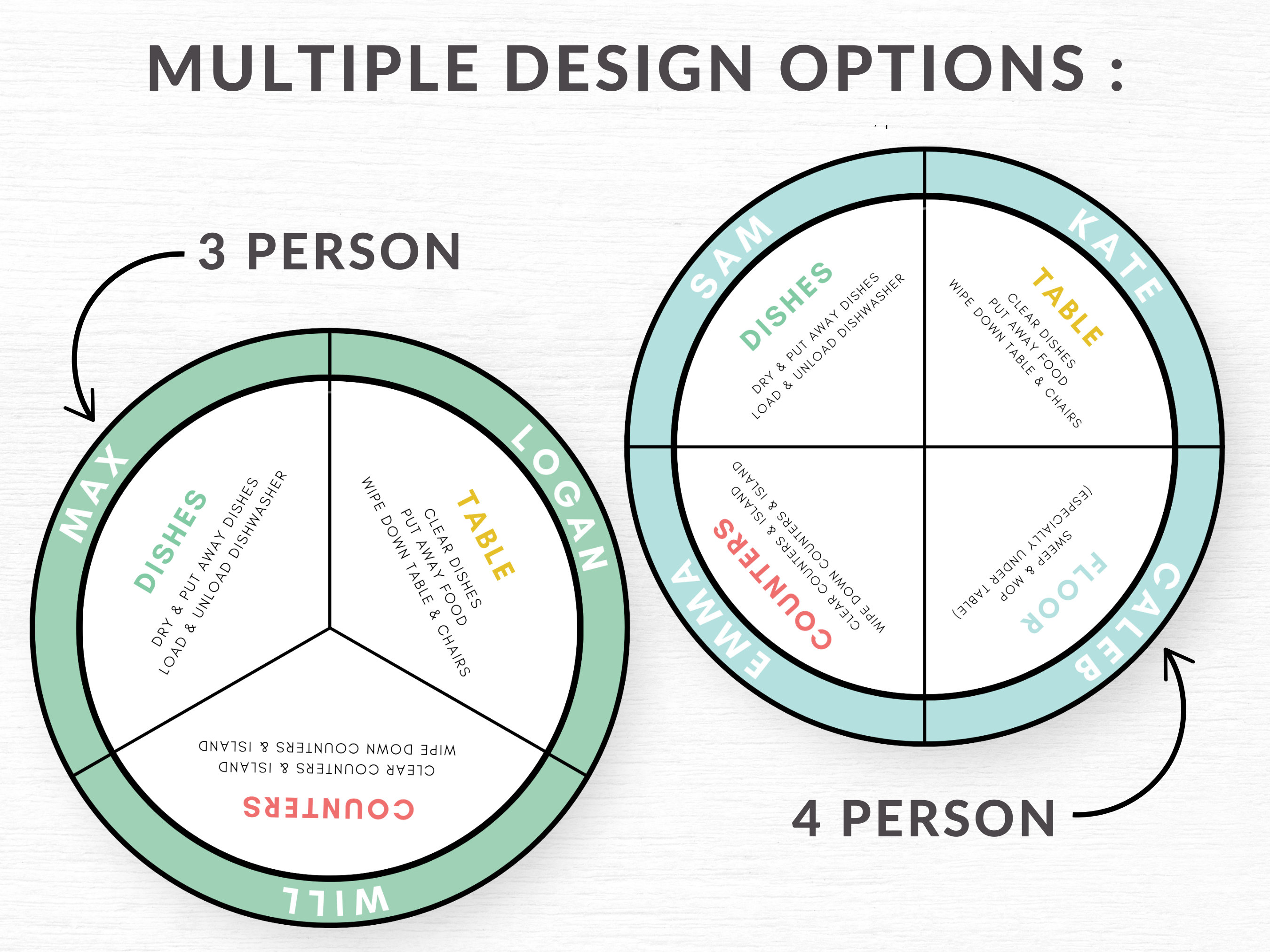 Chore Wheel for Families of 4 5 6 Printable Digital Download Blank