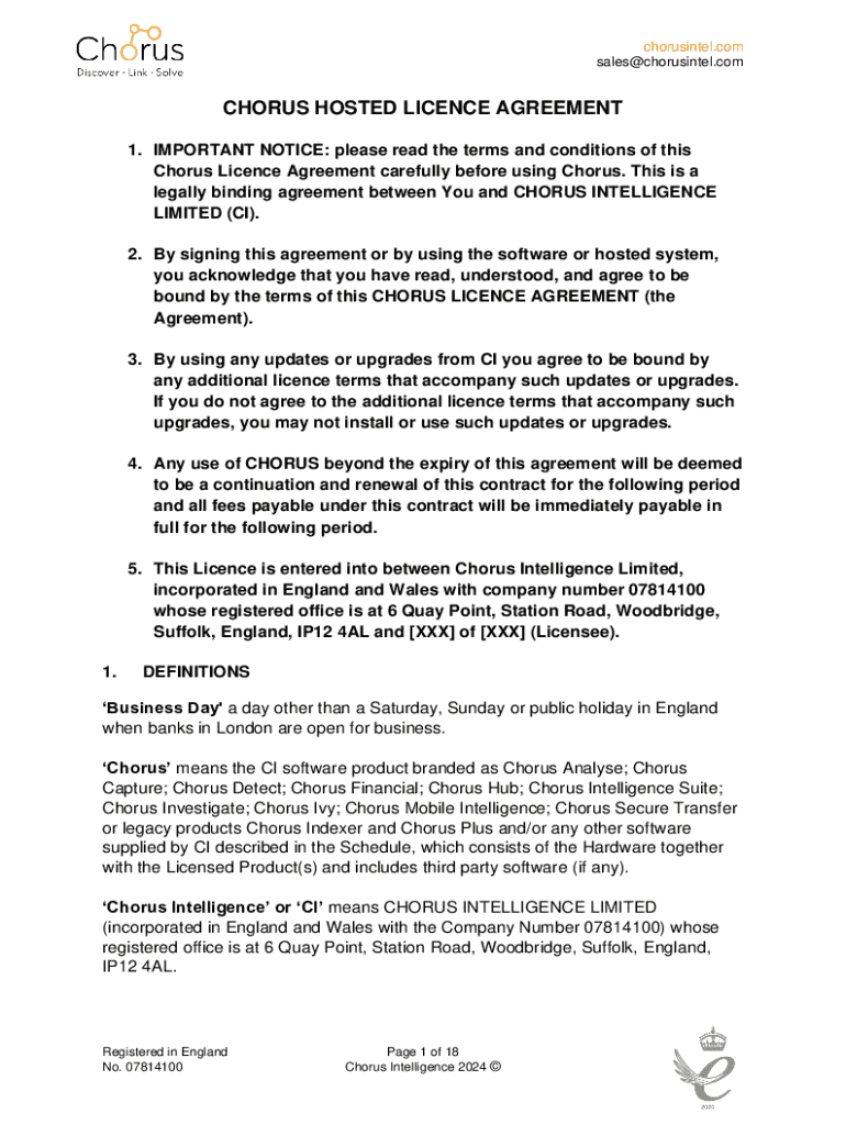Fillable Online Chorus Hosted Licence Agreement Fax Email Print pdfFiller