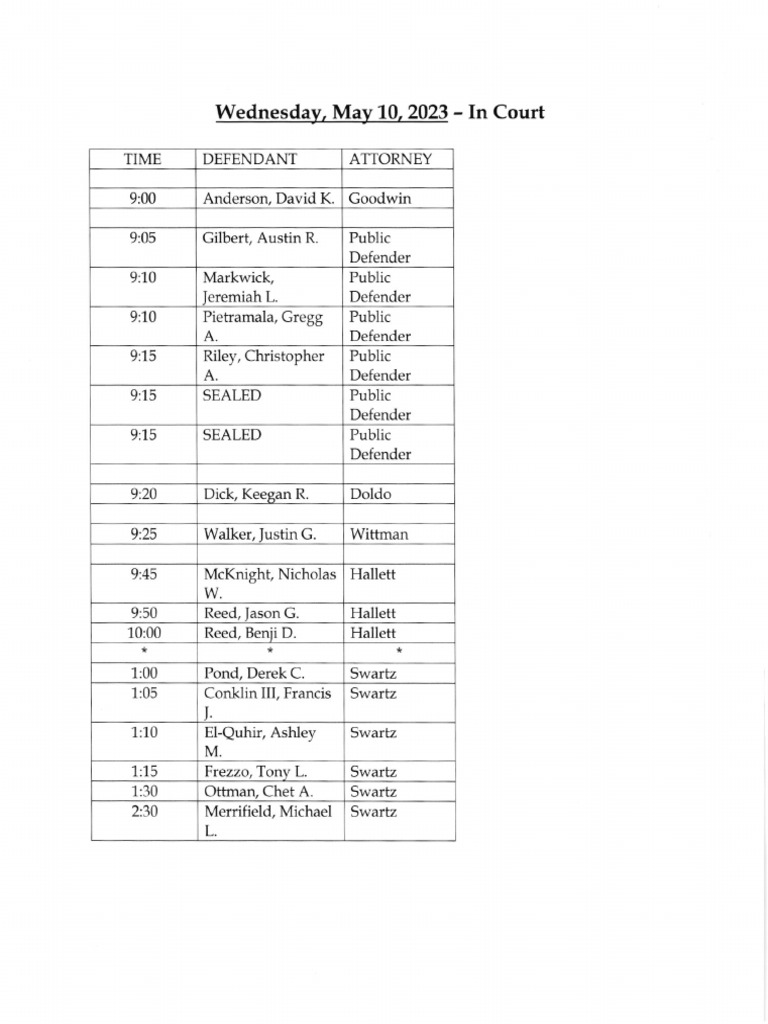 Jefferson County Court Calendar May 10 2023 PDF Social Science Law