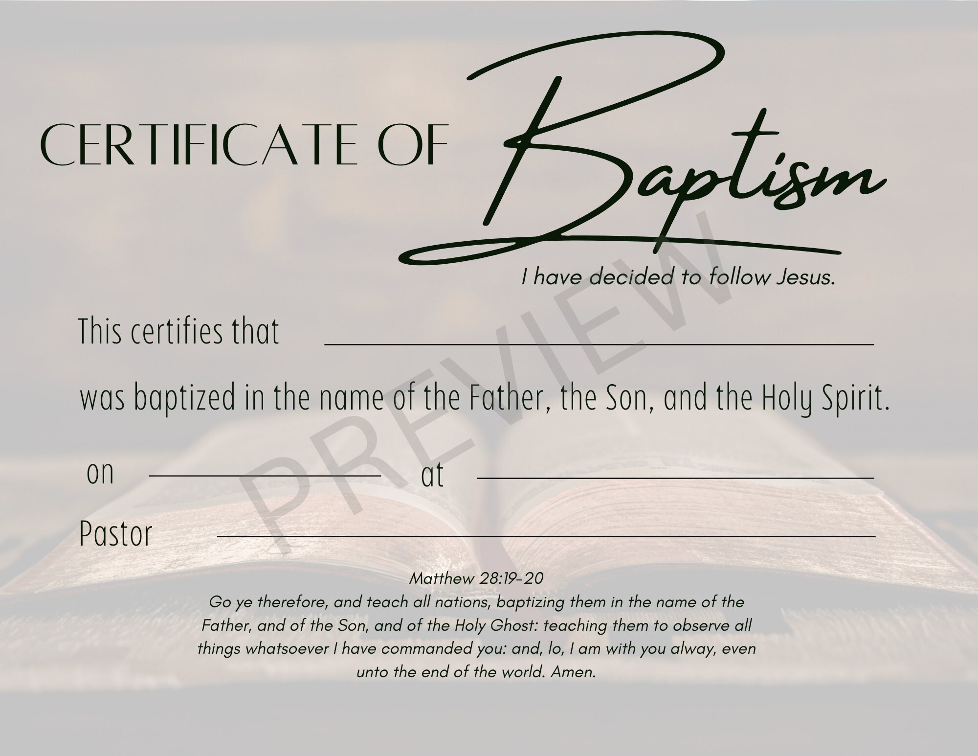 Printable Baptism Certificate Template KJV Instant Digital Download
