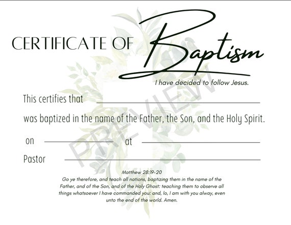Printable Baptism Certificate Template KJV Instant Digital Etsy