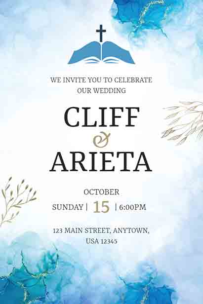 Floral Christian Wedding Invitation Template: Editable Church Wedding