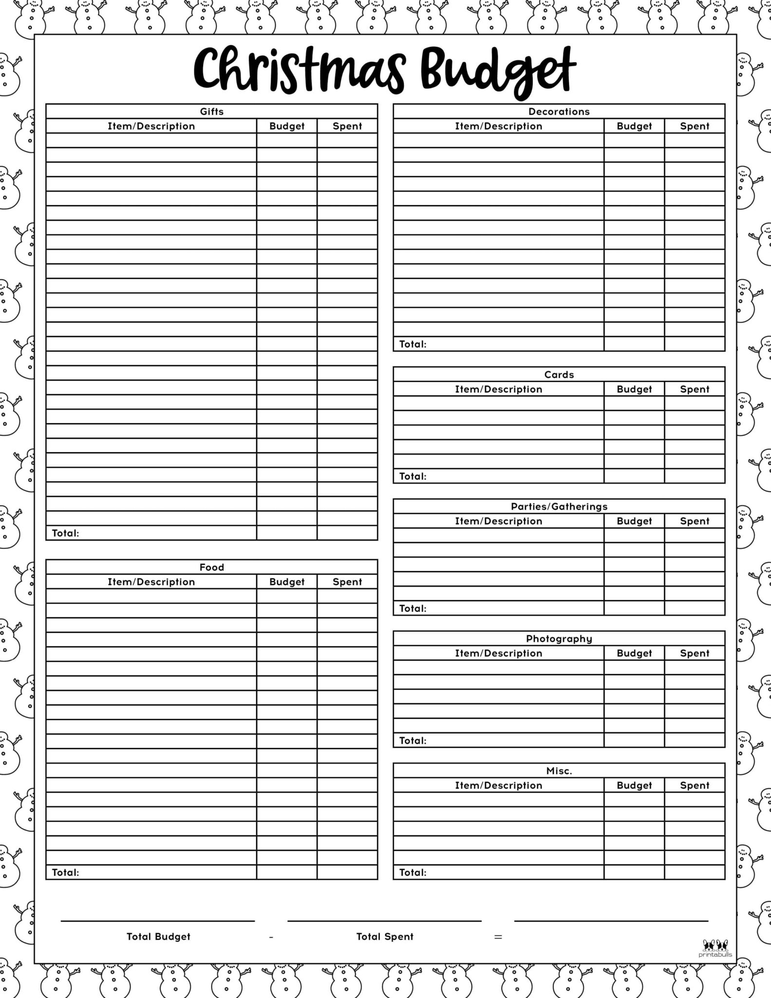 Christmas Budget Templates 12 FREE Pages Printabulls