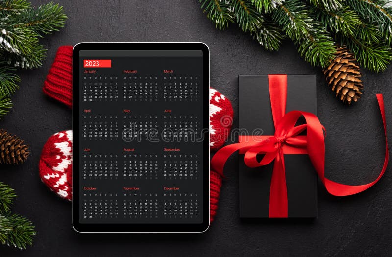 Tablet with Calendar and Christmas Decor Stock Image Image of gadget