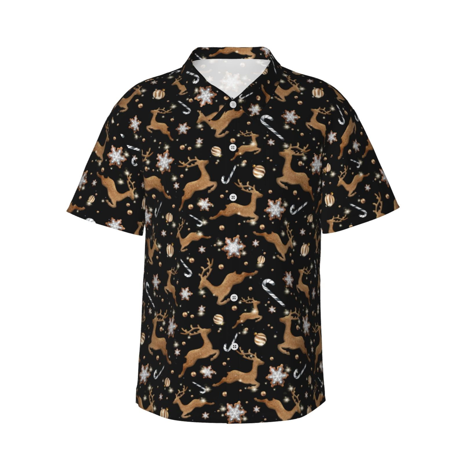 Cauagu Christmas Cookie Reindeer Print Hawaiian Shirt for Men Casual