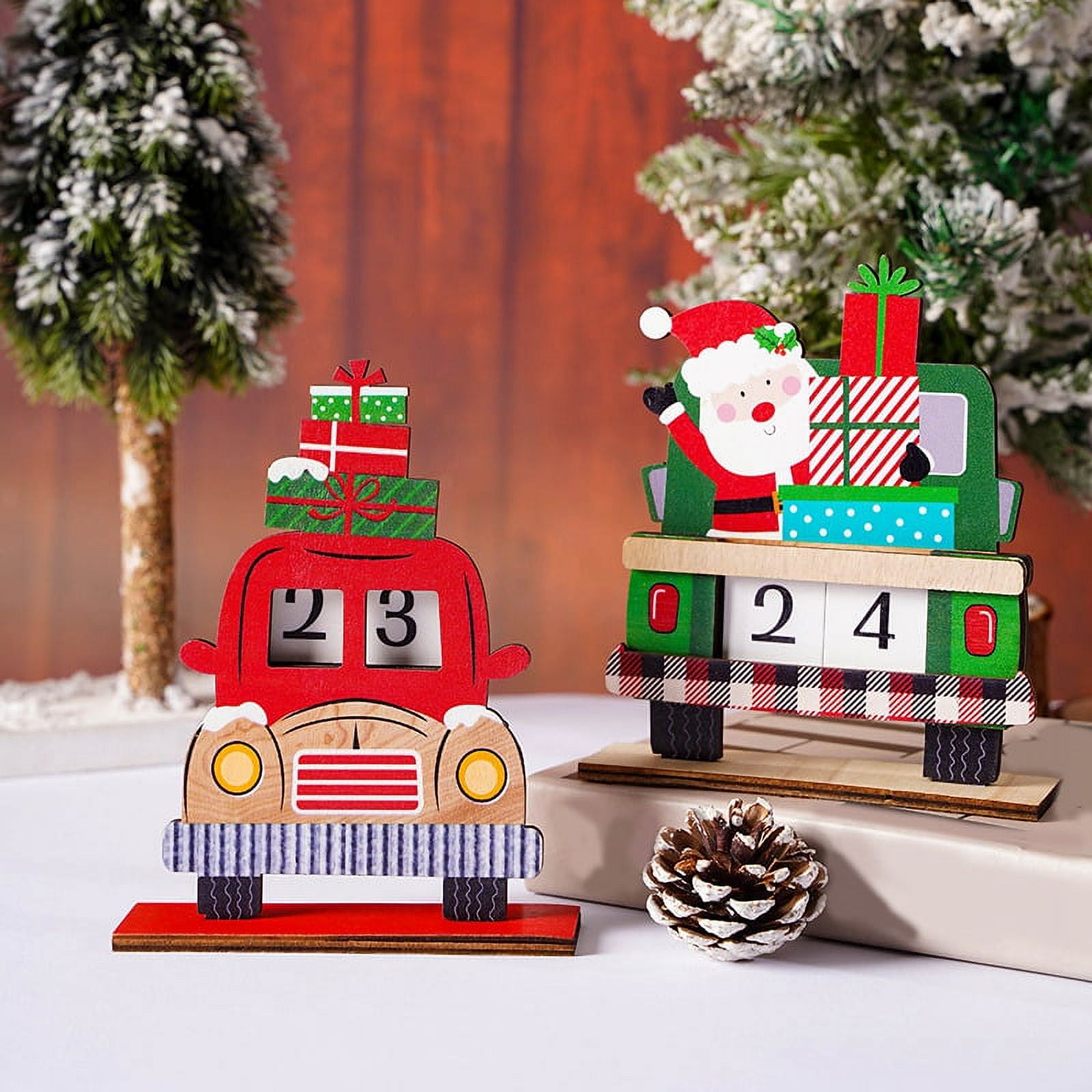 Christmas Advent Calendar Santa Desktop Ornaments Wooden Christmas