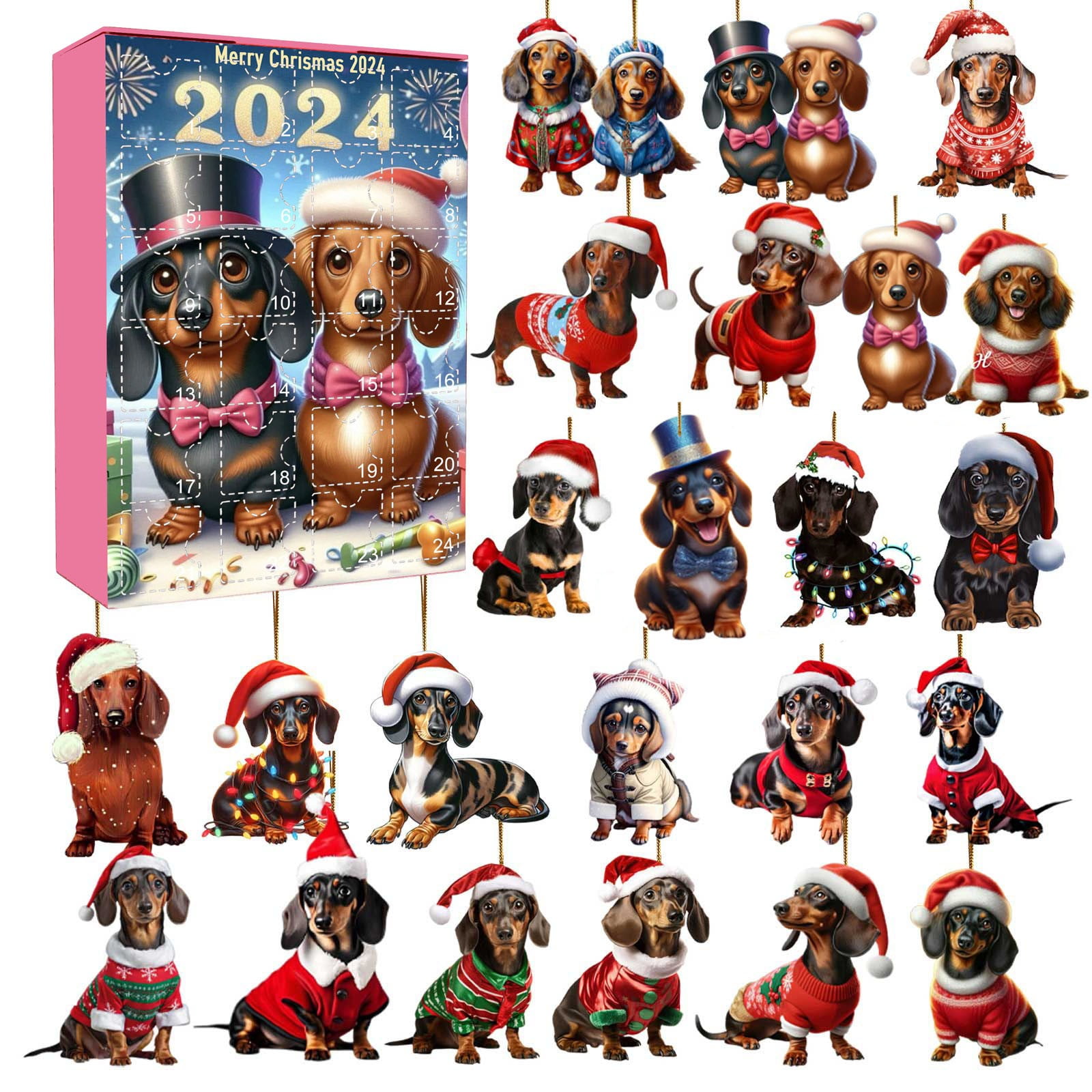 Countdown Sets 2D Sausage Dog Ornaments Advent Calendar for Kids 24