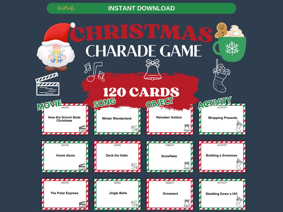 Christmas Charades Christmas Printable Game Christmas Party Game for