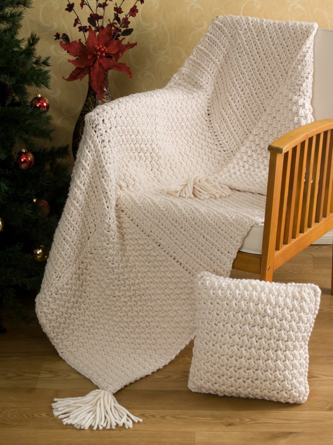 Aran Squared Pillow Throw Set Crochet Pattern Etsy