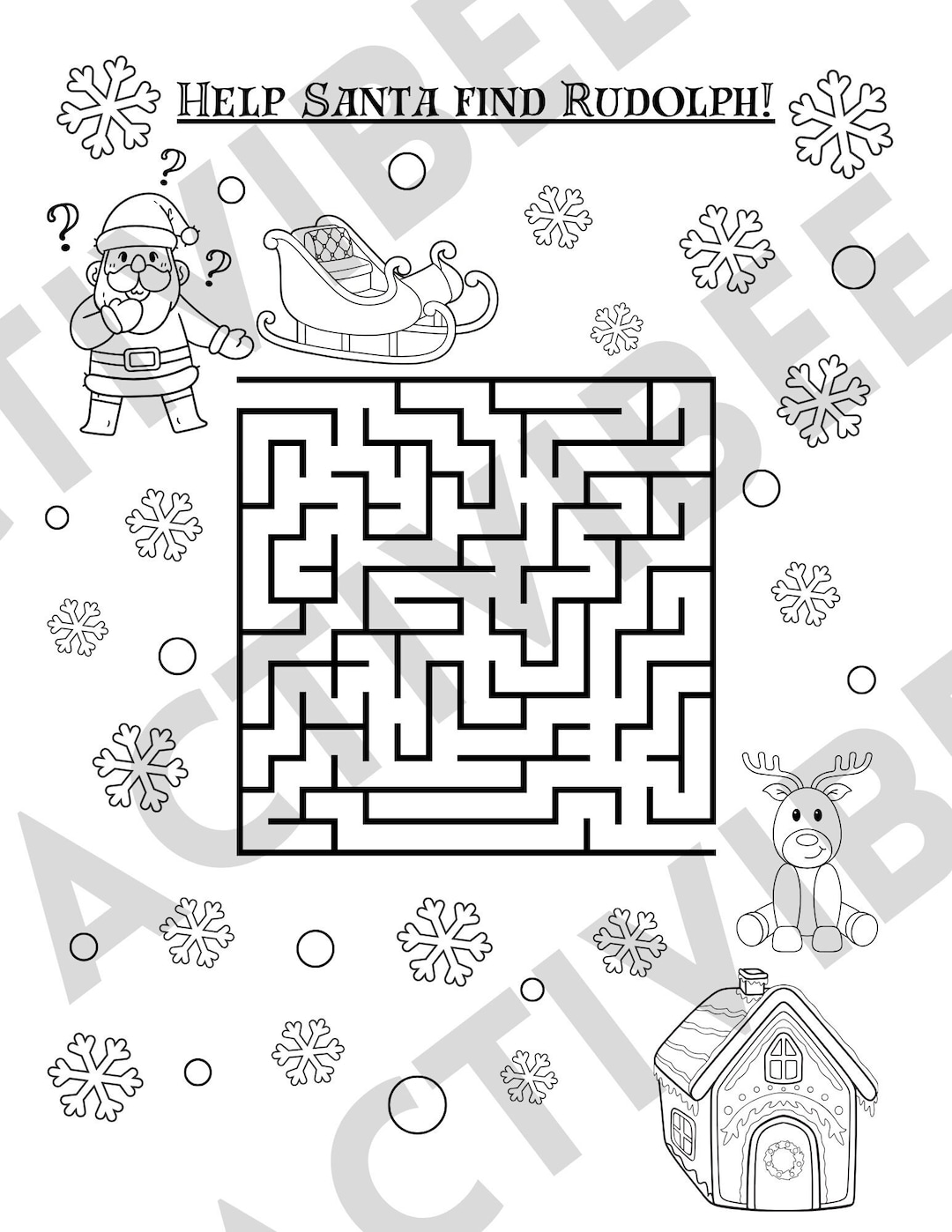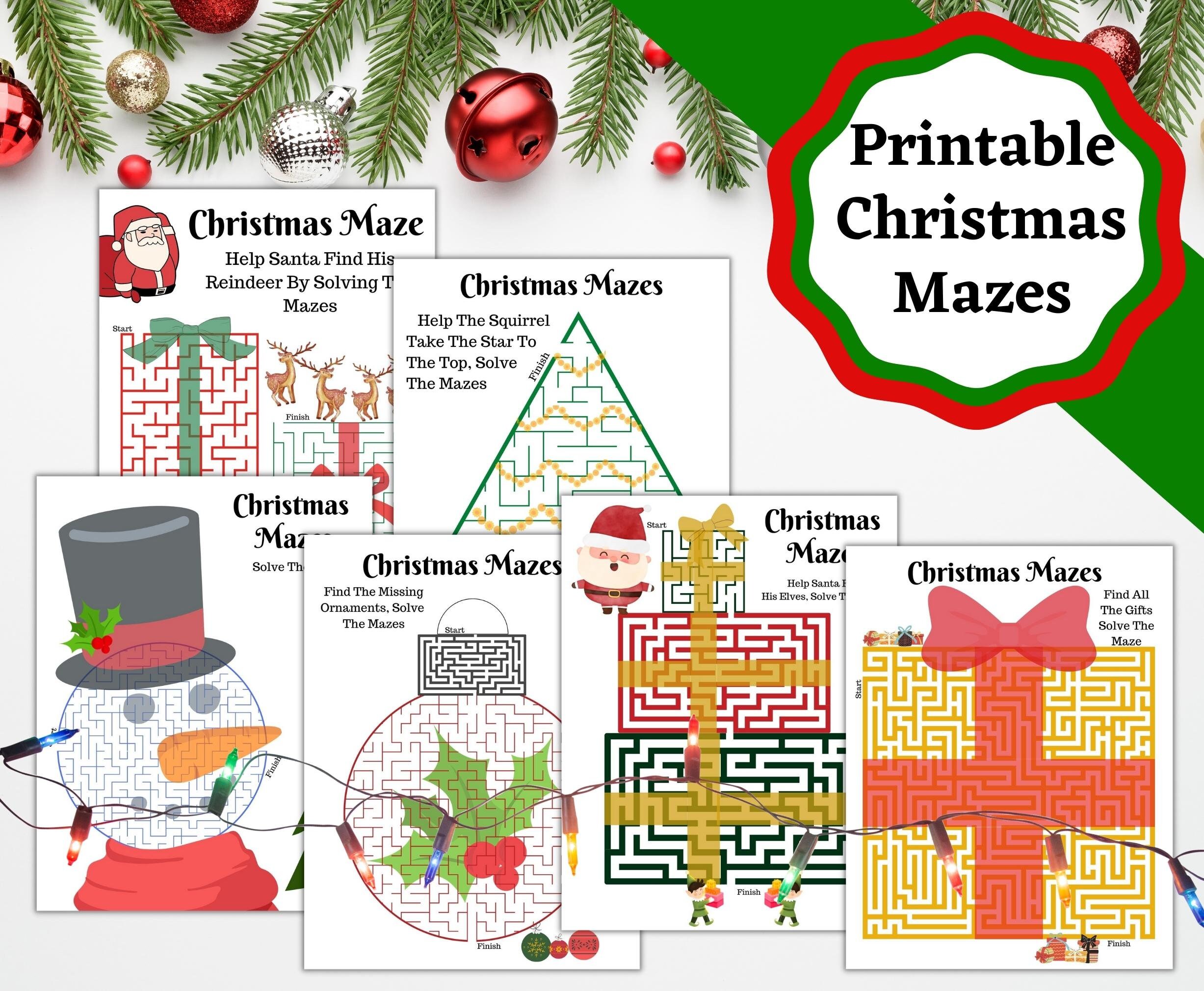 Christmas Mazes Printable Activity Pack Holiday Festive Xmas Dinner