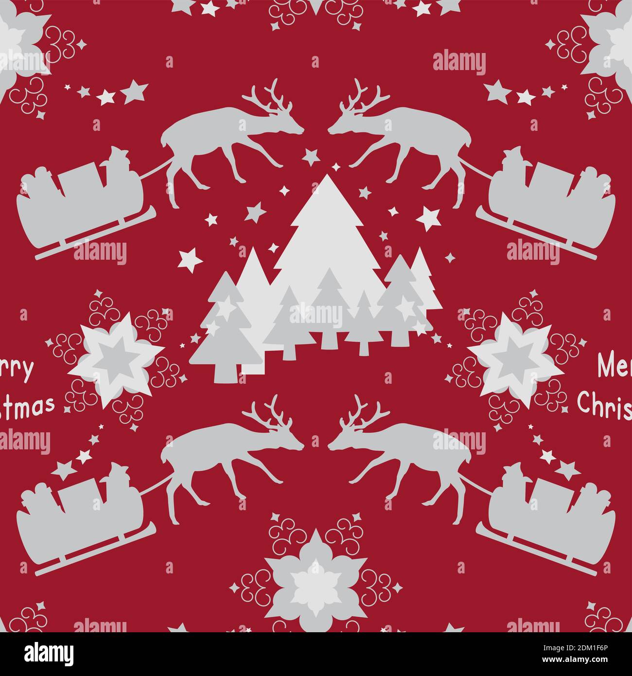 Christmas seamless pattern Reindeer and his sleigh Stars and fir