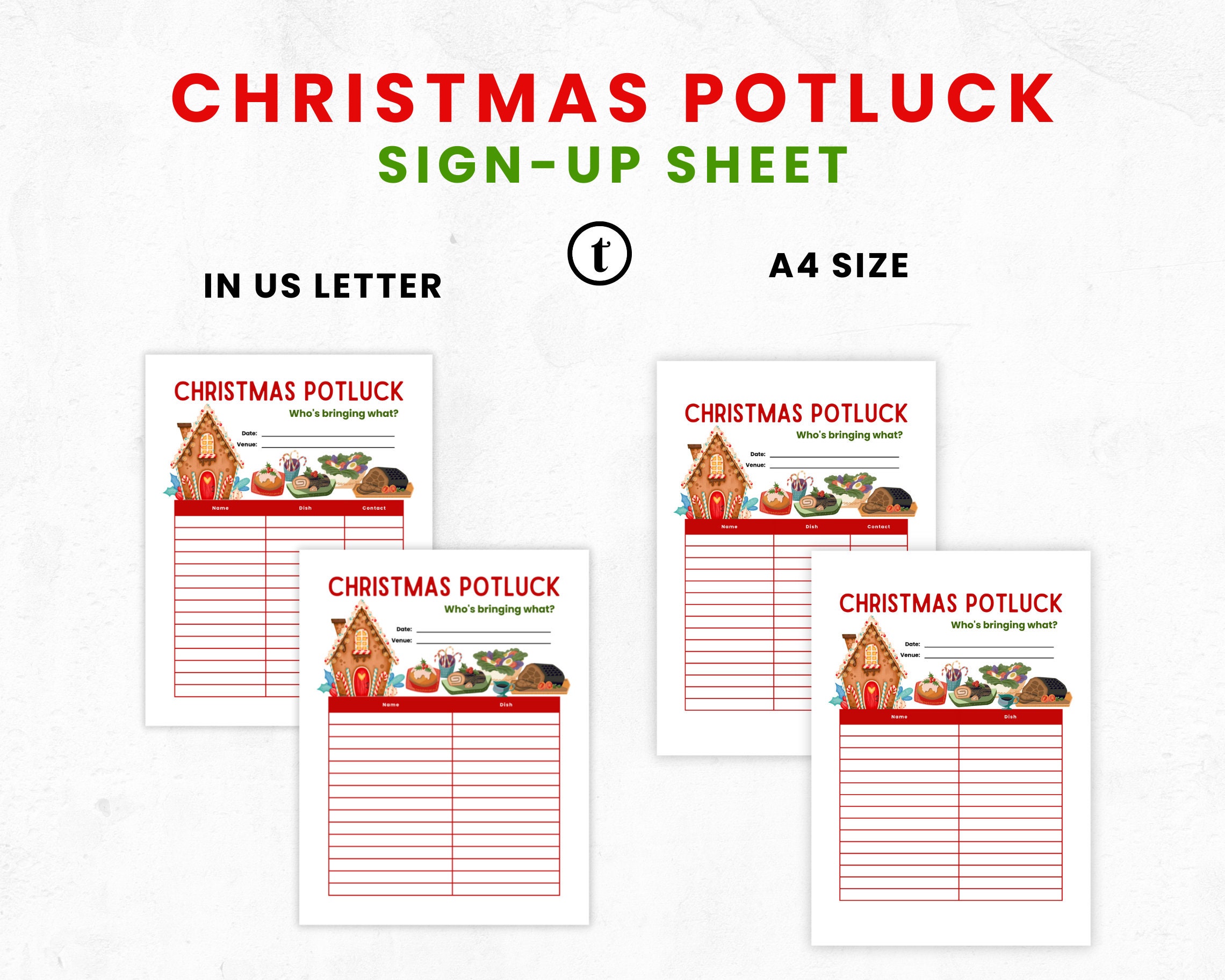 Holiday Potluck Sign up Sheet Template Editable Printable Christmas