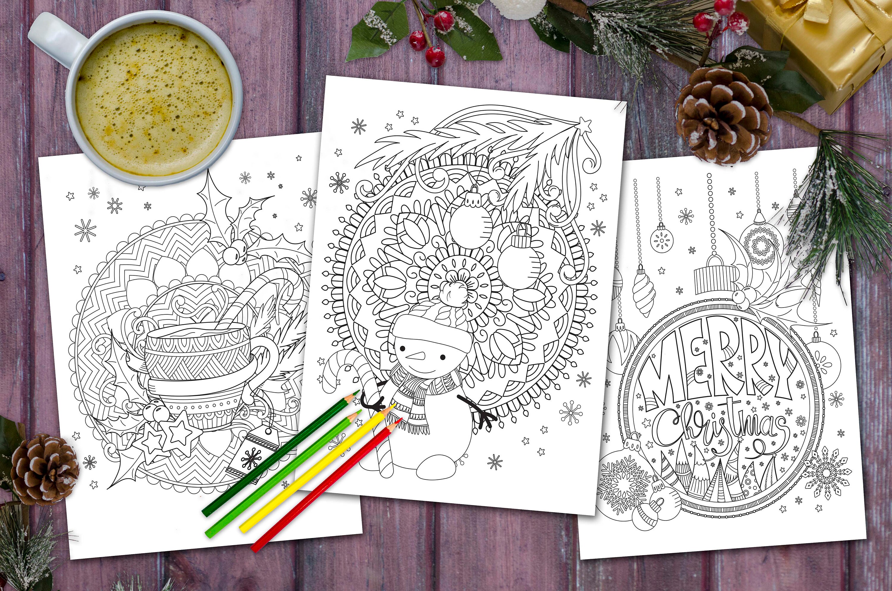 Christmas Coloring Pages for Adults 8 Printable Coloring Pages Etsy