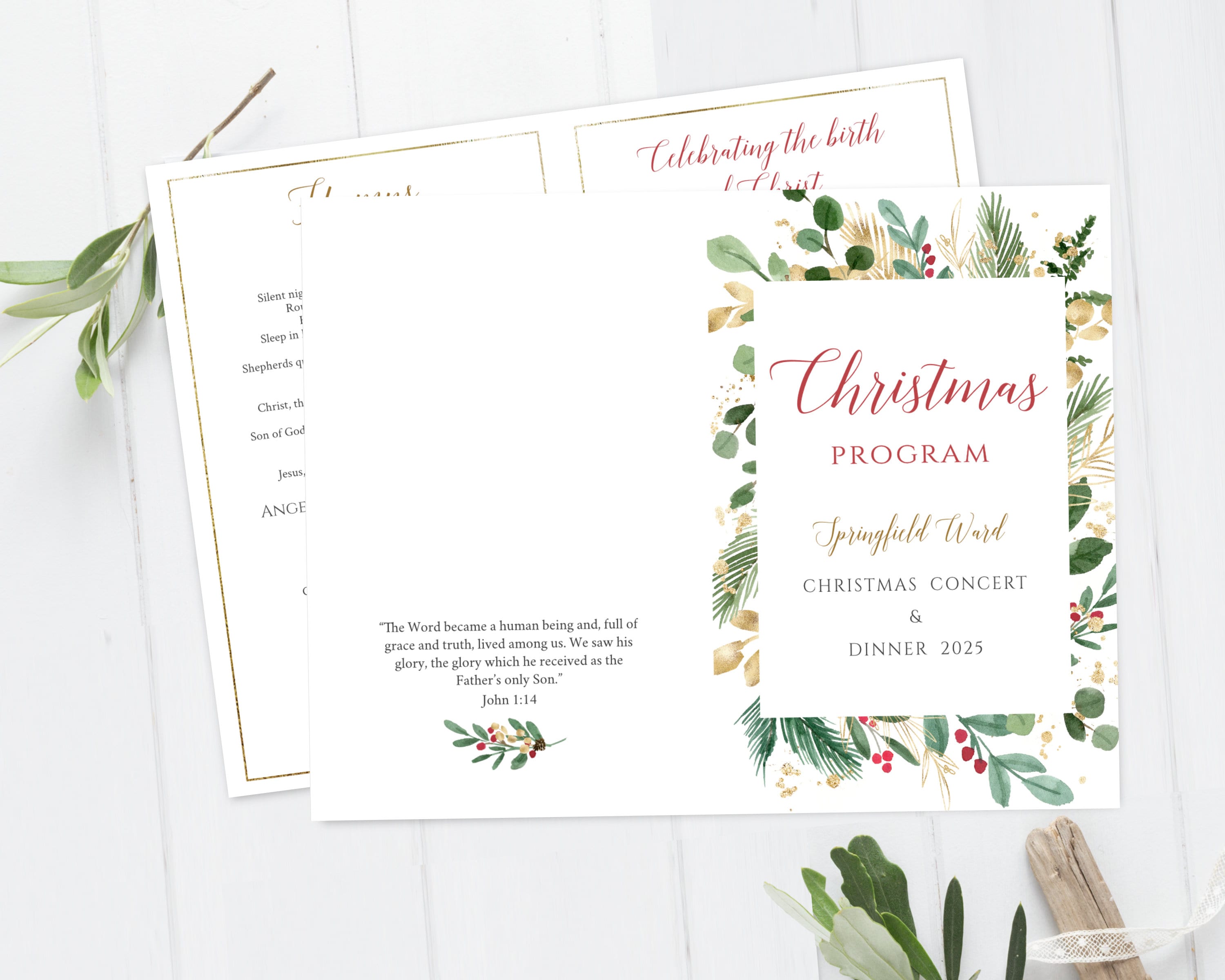Christmas Program Editable Template Christmas Greenery Foliage Leaves