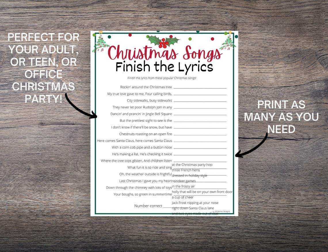 Christmas Song Finish the Lyrics Game for Adults Teens Etsy