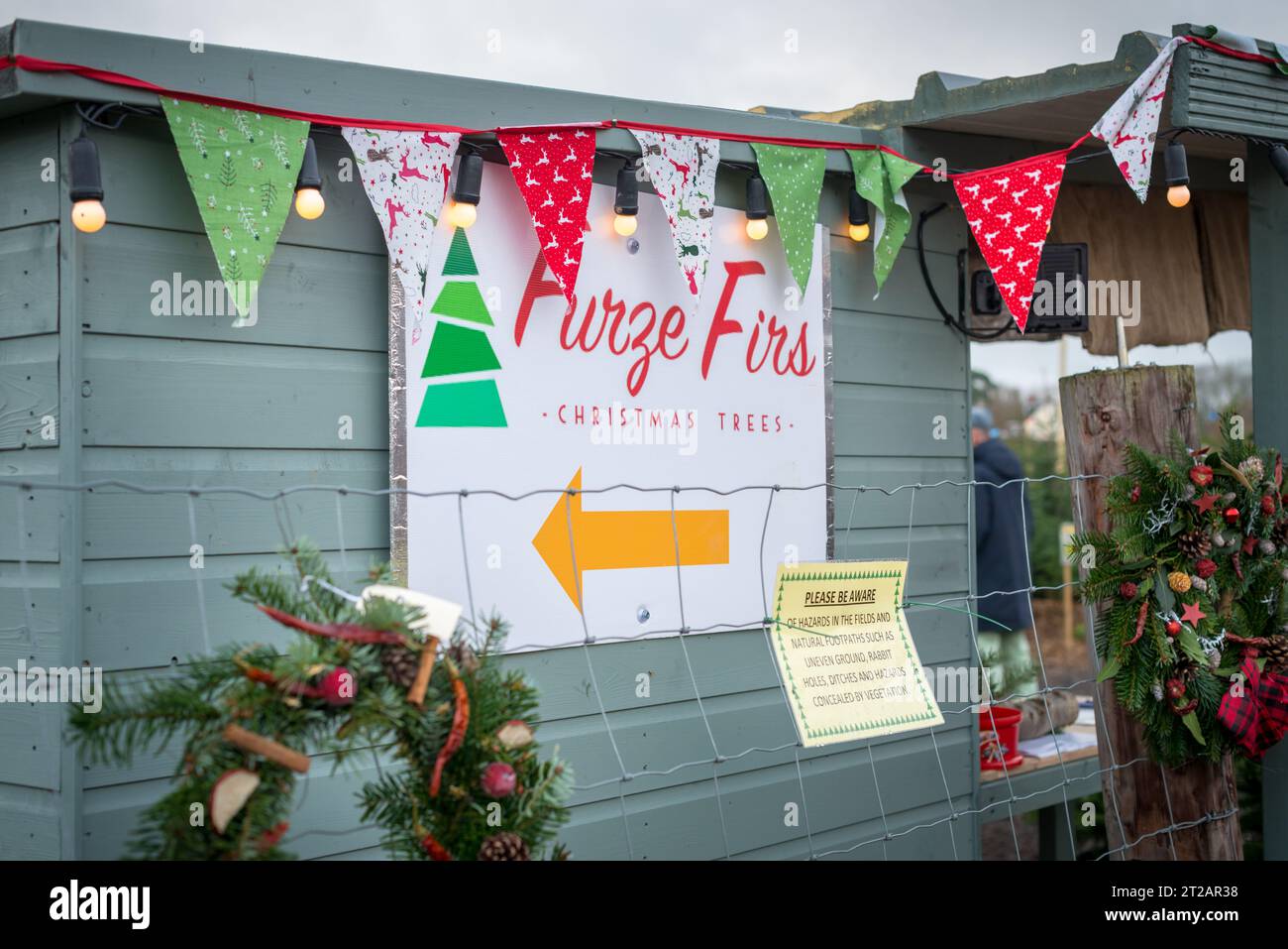 Christmas Tree Farm sign with bunting Stock Photo Alamy