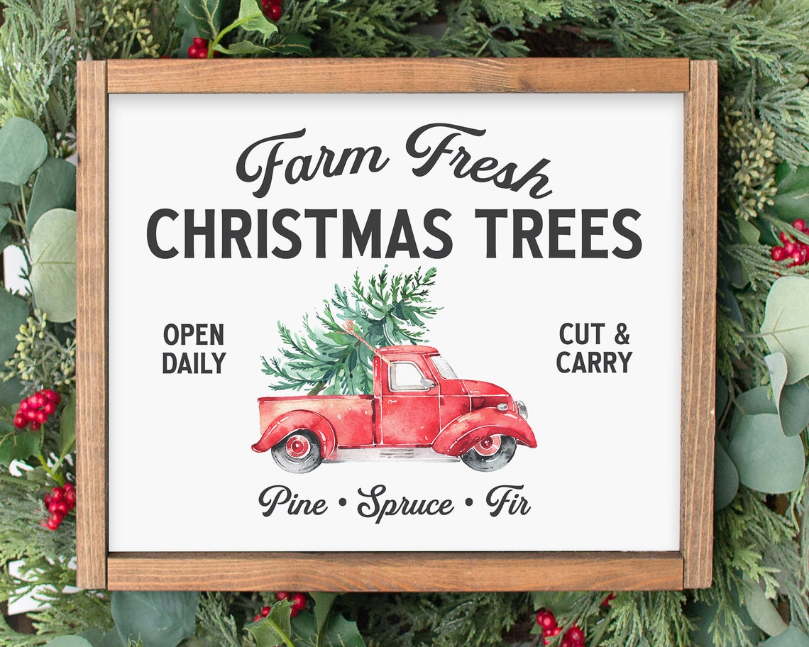 Farm Fresh Christmas Tree Sign Printable Wall Art Etsy