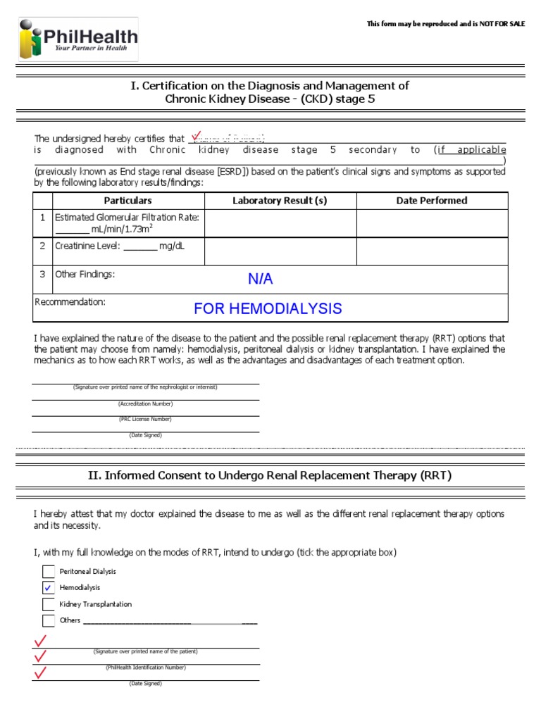 N/A For Hemodialysis: I Certification On The Diagnosis and Management
