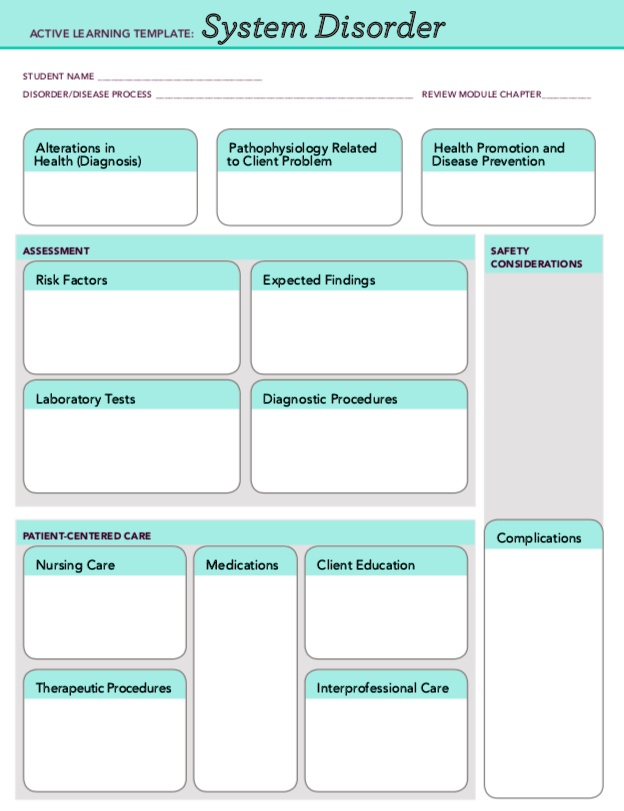System Disorder Renal disorder ACTIVE LEARNING TEMPLATES System