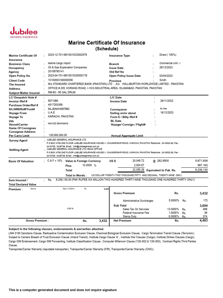 Marine Cargo Insurance Certificate PDF Insurance Service Industries