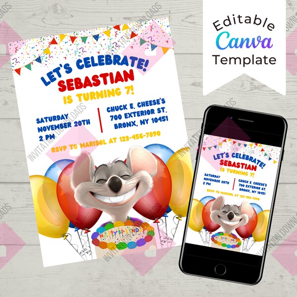 Editable Chuck E Cheese Birthday Invitation Printable Mouse Invite