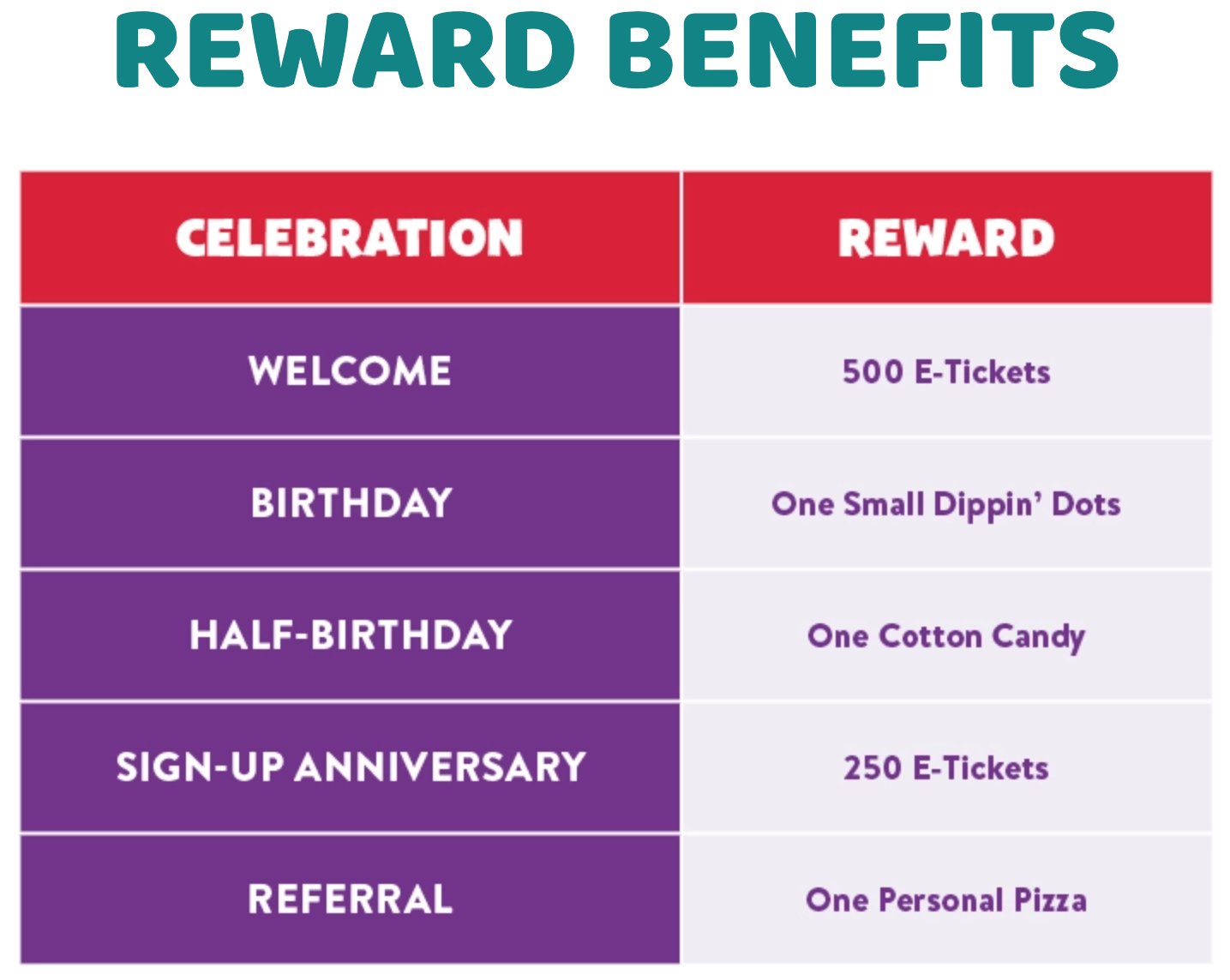 Chuck E Cheese Reward Calendar