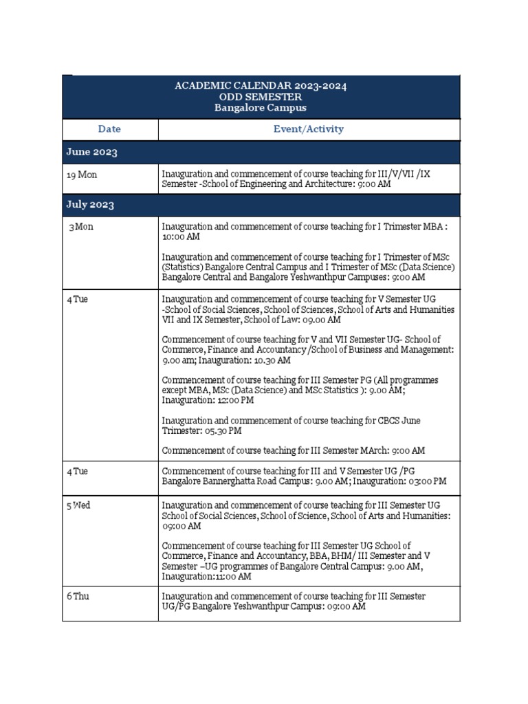 ACADEMIC CALENDAR 2023 2024 Christ University Bengaluru PDF