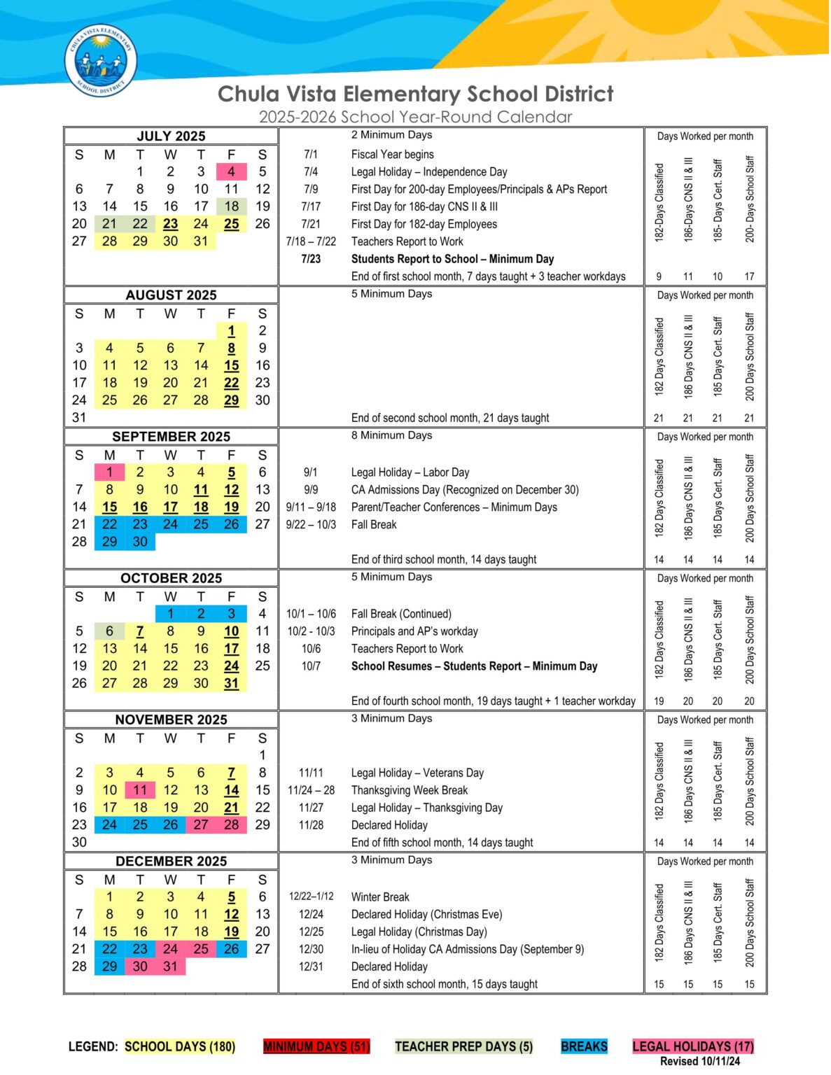 Chula Vista Elementary School District Calendar 25 26 PDF EduCounty