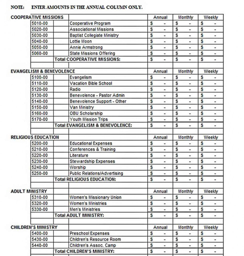 Church annual budget template Artofit