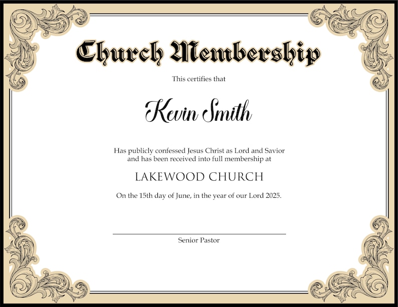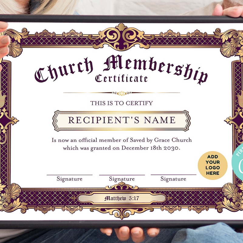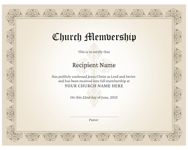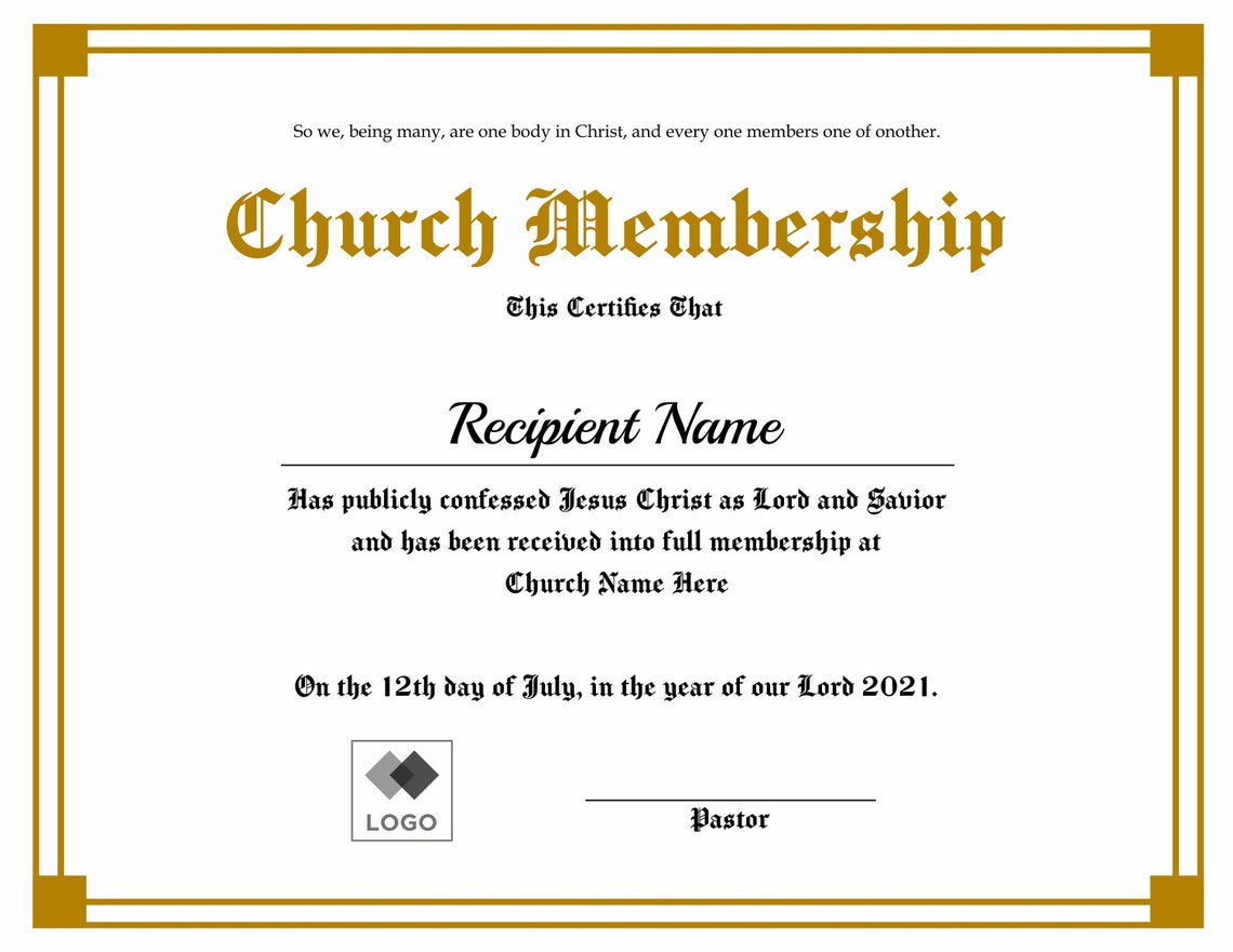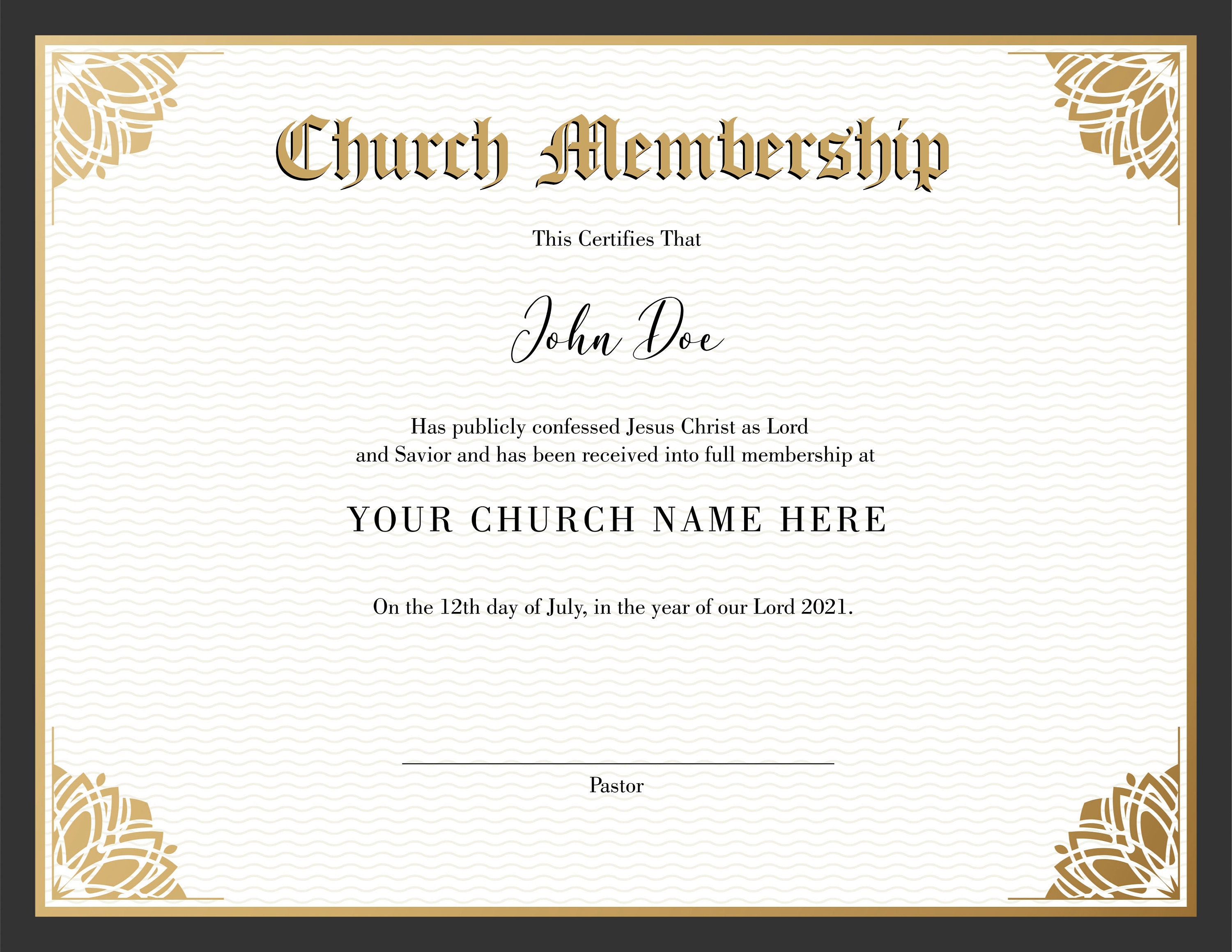 Church Membership Certificate Template Free PDF Word (DOC) PSD