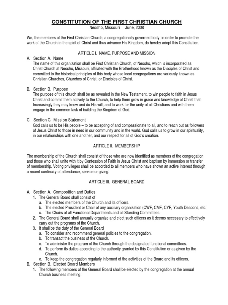 Church Constitution and Bylaws PDF Christian Church (Disciples Of